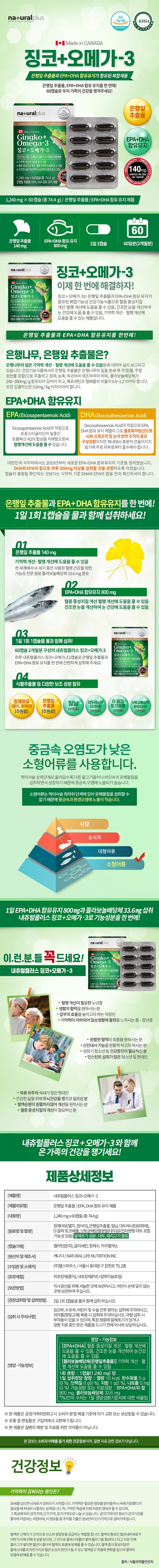 내츄럴플러스 징코+오메가3 1,240mgx60캡슐