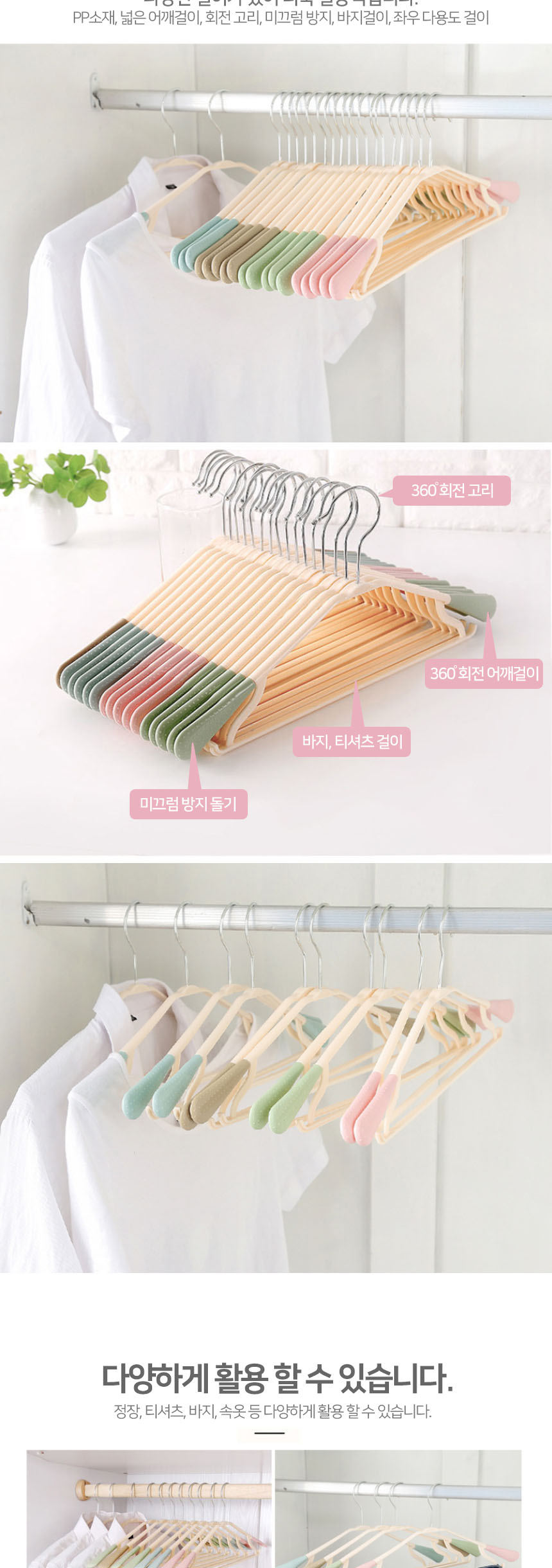 미끄럼 방지 옷걸이 니트 티셔츠 슬림 거치대 beige5P