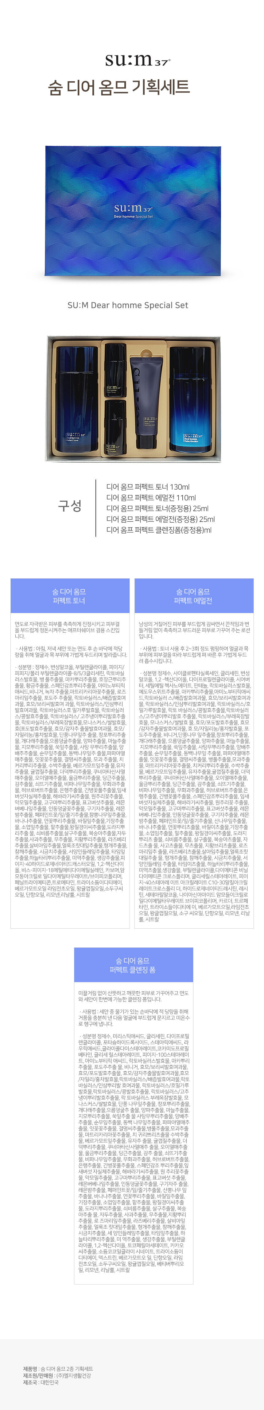 숨 37도 디어 옴므 남성 화장품 세트 에멀전 토너