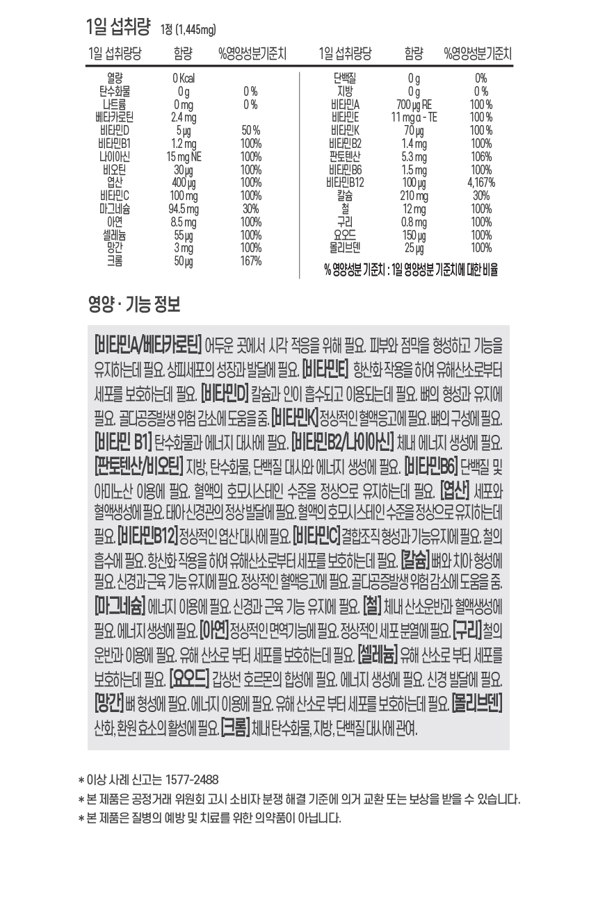 -섭취량, 섭취방법 및 섭취시 주의사항, 부작용 : 상세페이지 참조