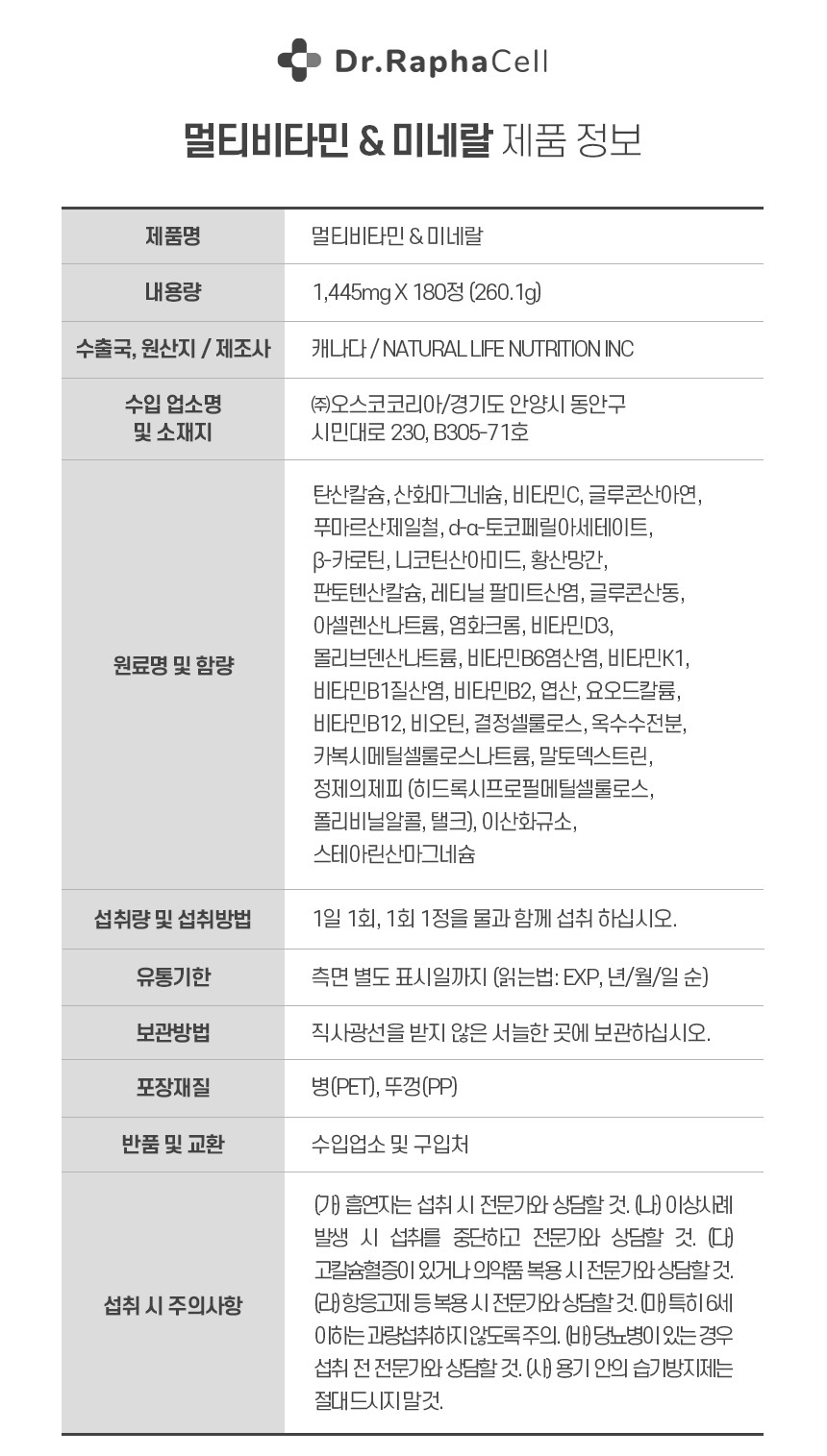 닥터라파셀 멀티비타민 180정