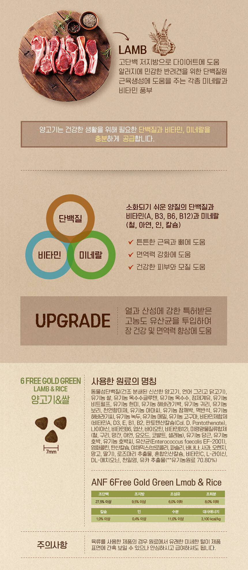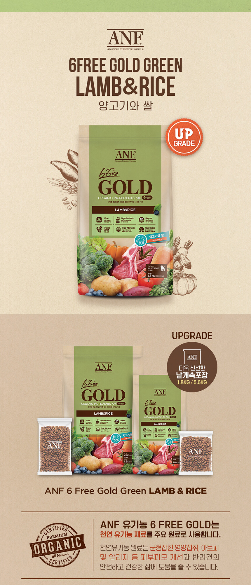 [ANF][강아지사료] 유기농 6FREE GOLD 독 양고기와 쌀 1.6kg