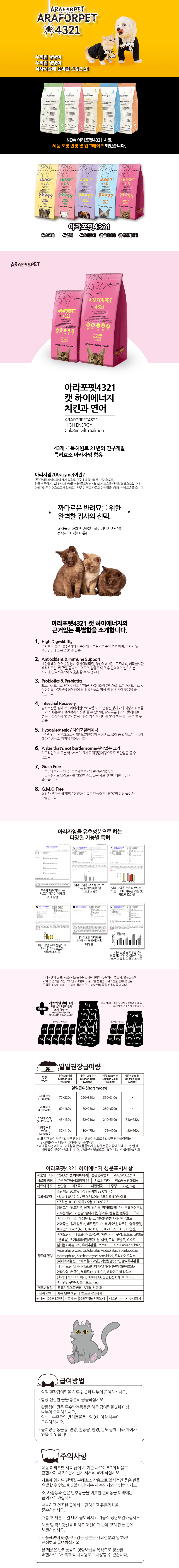 [아라포펫4321][고양이사료] 캣사료 하이에너지 치킨과연어 1.2kg / 3kg
