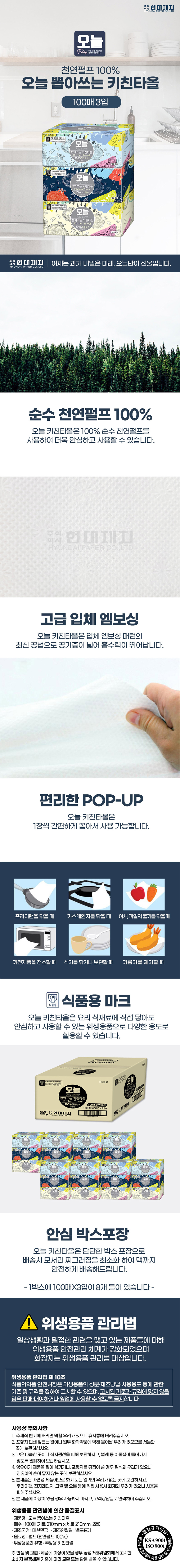 오늘 뽑아쓰는 천연펄프 100% 키친타월 100매 3입 4개 (총12개)