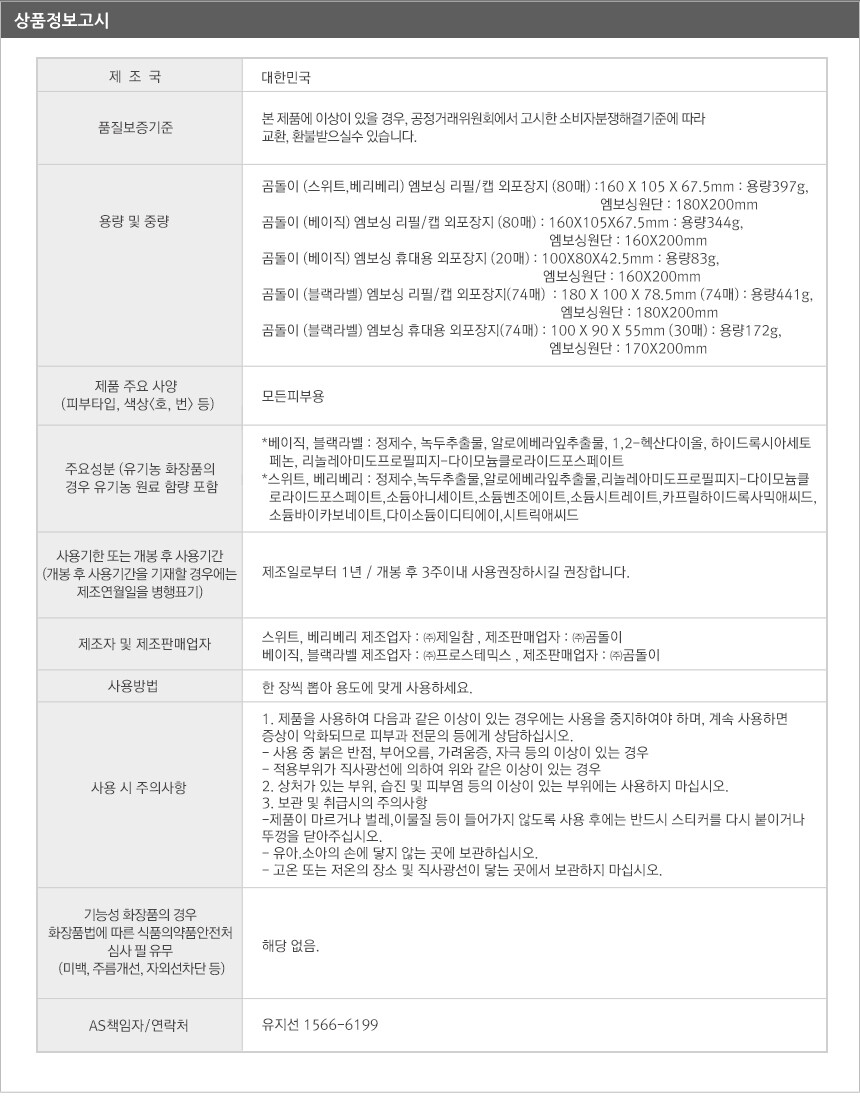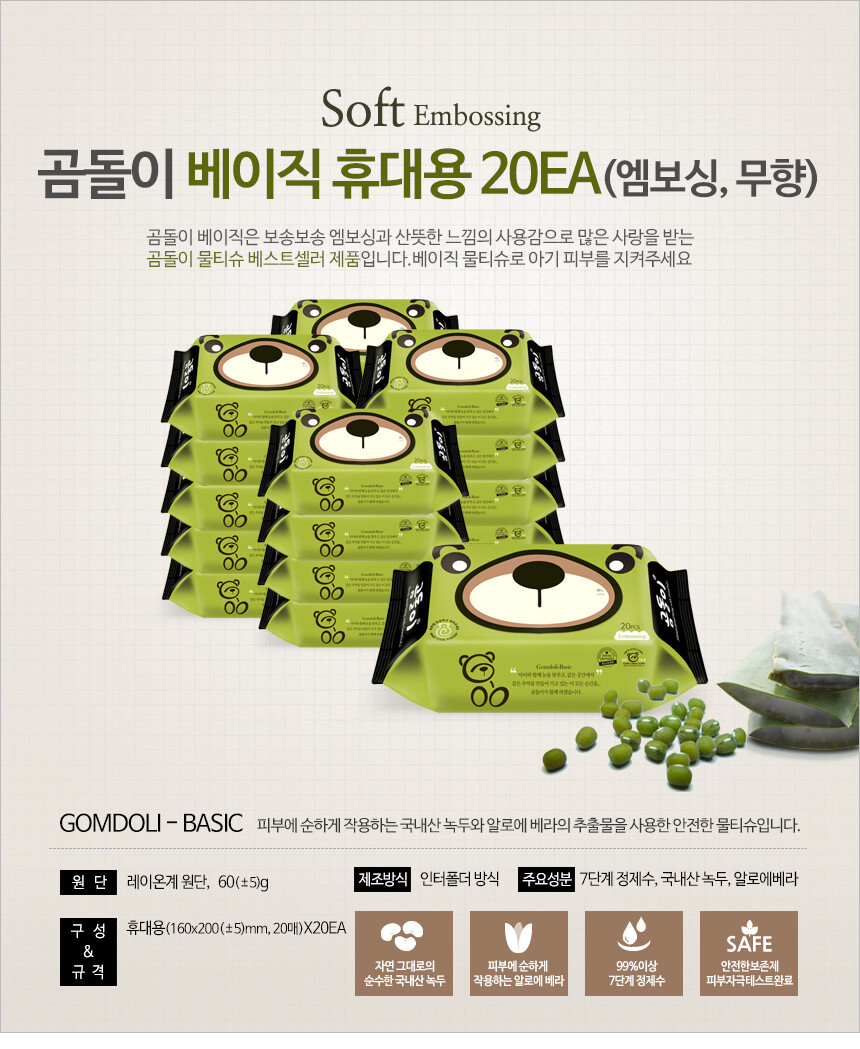 곰돌이 베이직 캡형80매x8팩 휴대20매x4팩