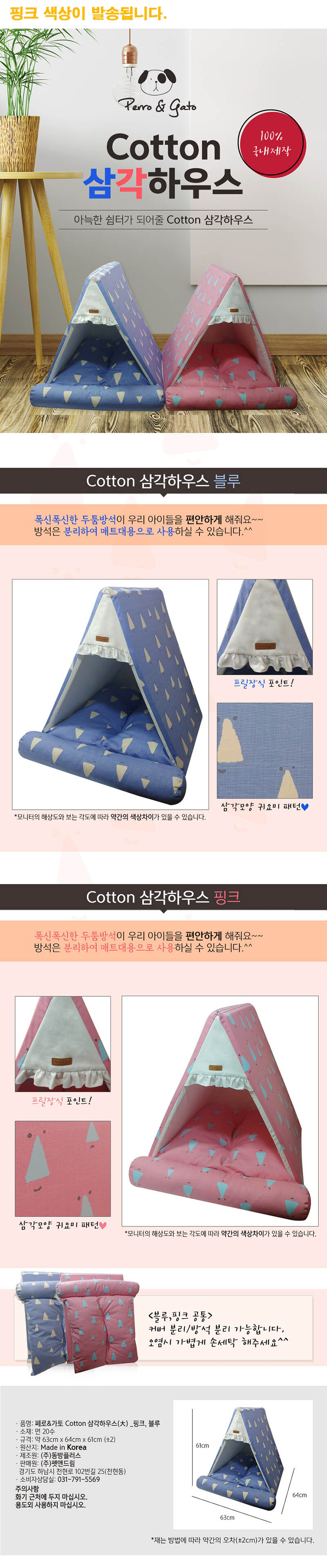 [강아지 고양이 하우스] 페로가토 코튼 삼각하우스 대 핑크