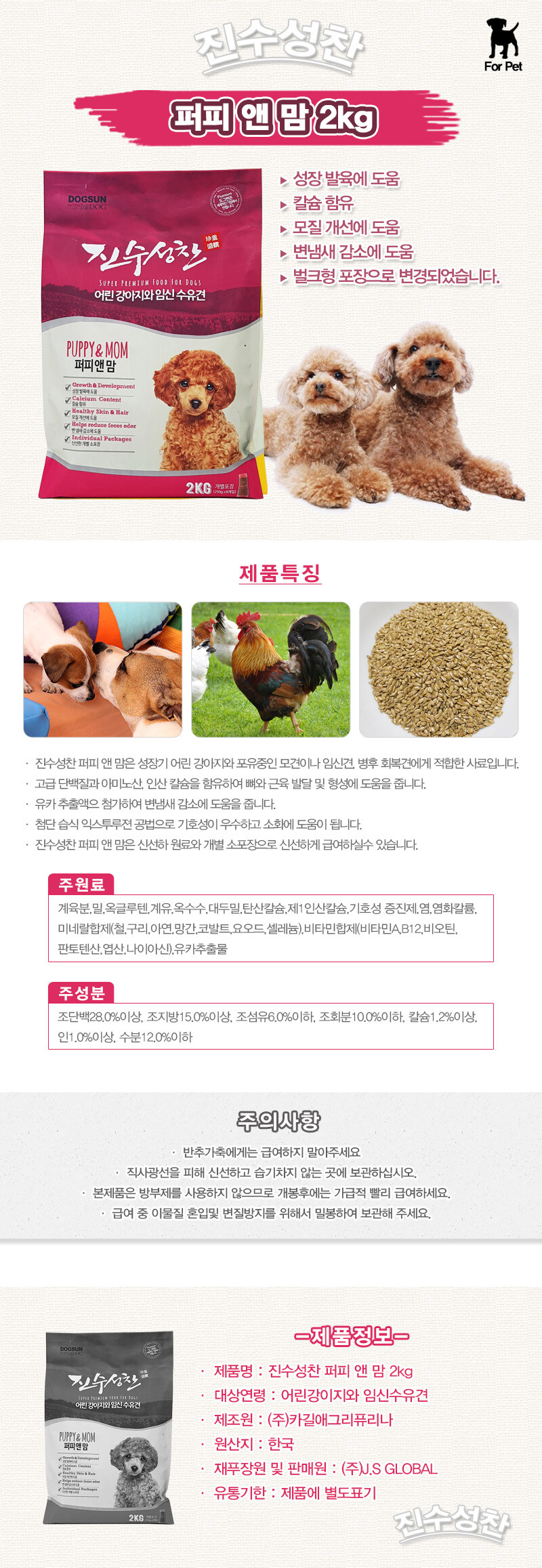 [진수성찬] [강아지사료] 퍼피 앤 맘 리필 2kg(250g×8개)