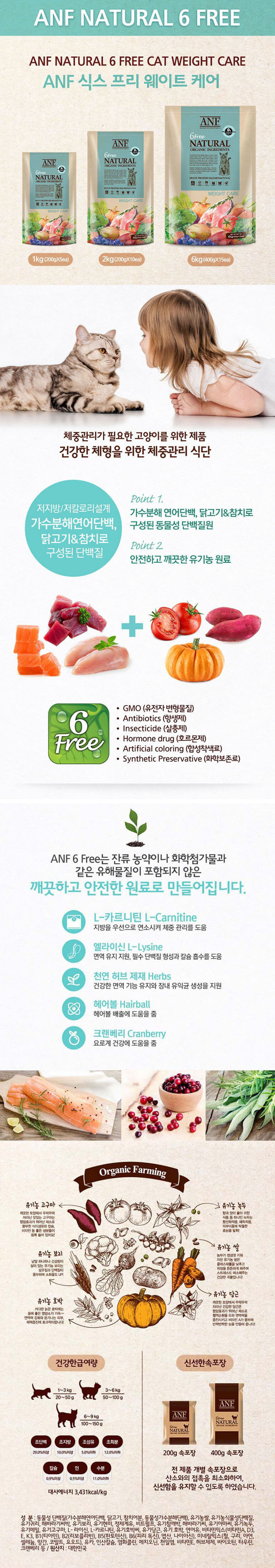 [ANF][고양이사료] 유기농 6FREE 캣 인도어 웨이트케어 1.6kg