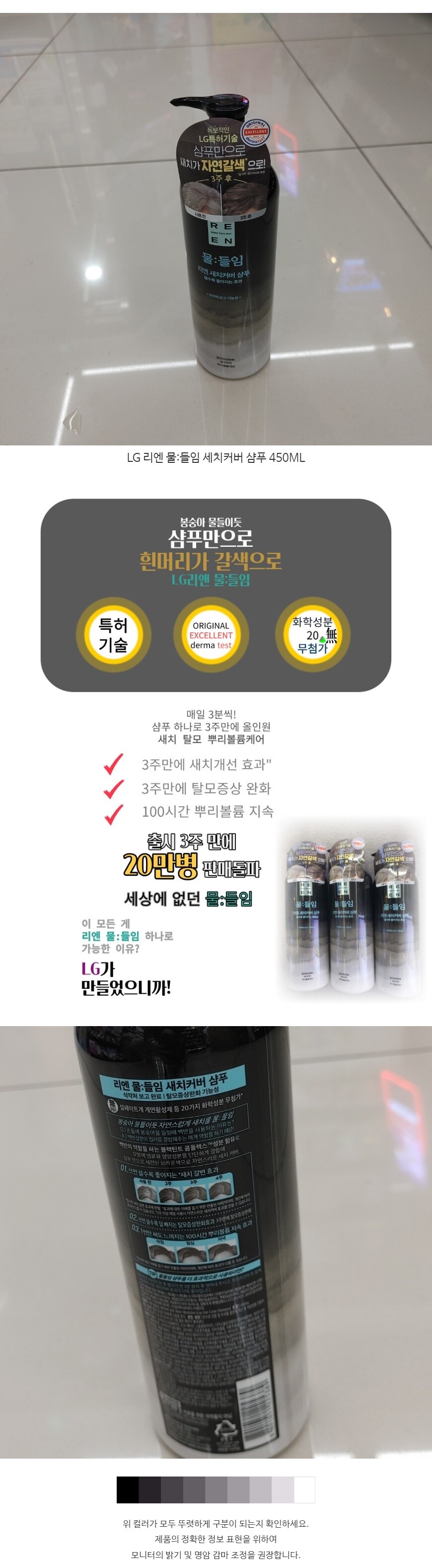 리엔 물들임 새치커버 샴푸 450ML 탈모샴푸 자연갈색