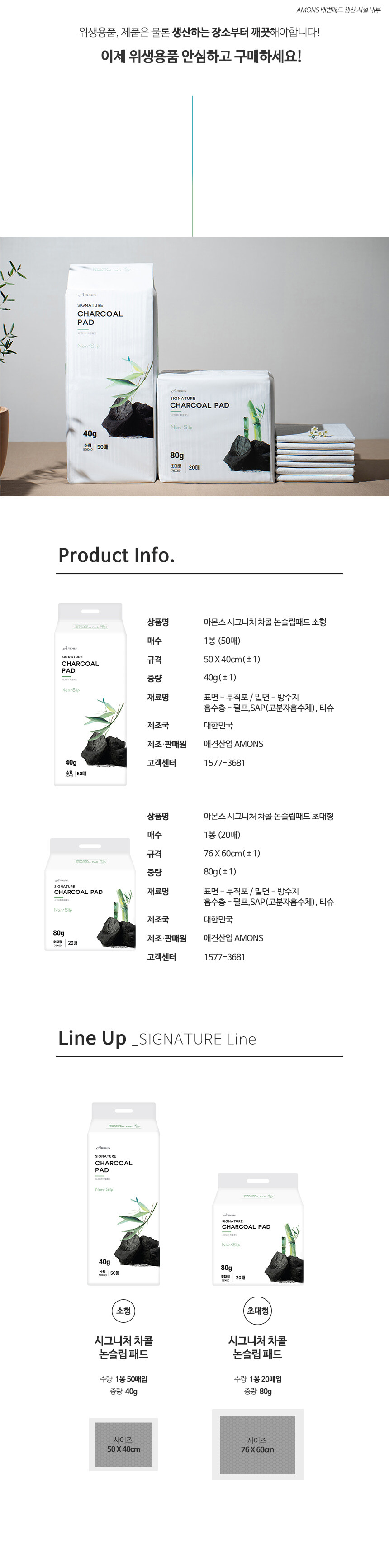 [강아지 배변패드] 아몬스 시그니처 차콜 논슬립 패드 강아지배변패드 소형 50매 X 6EA