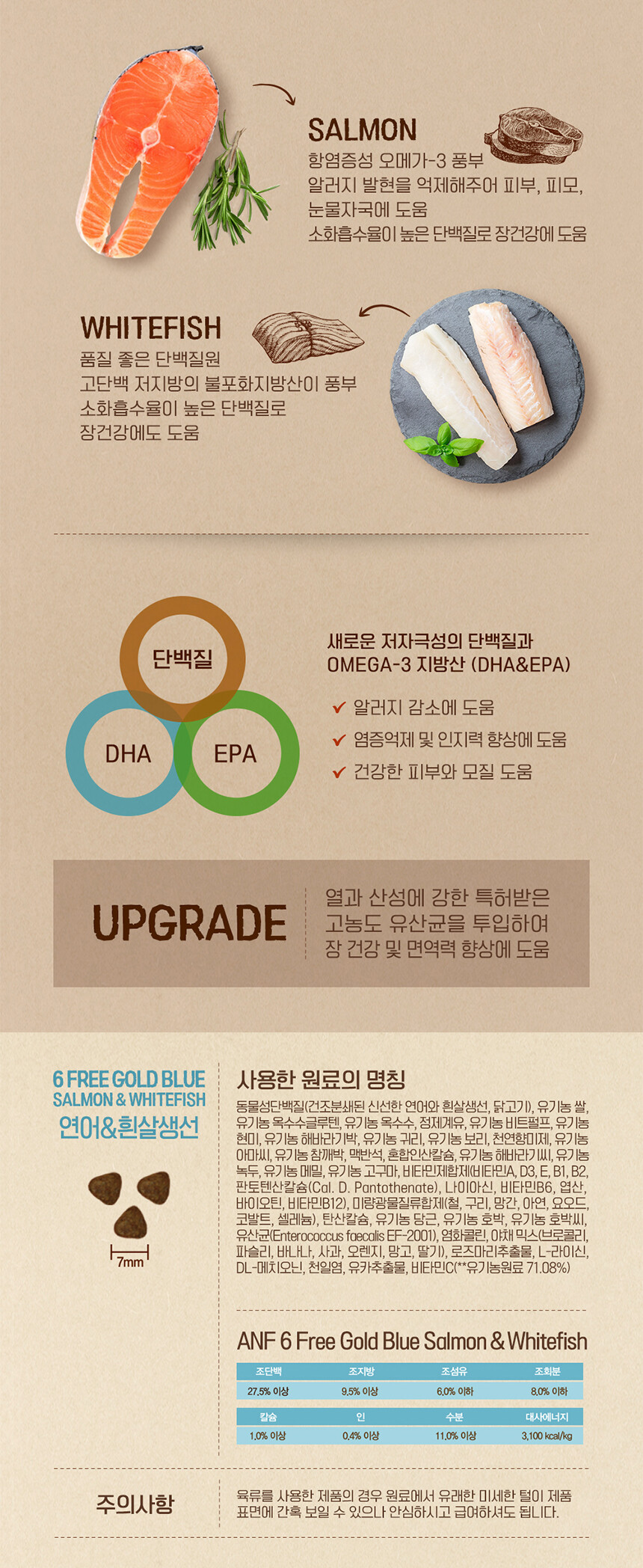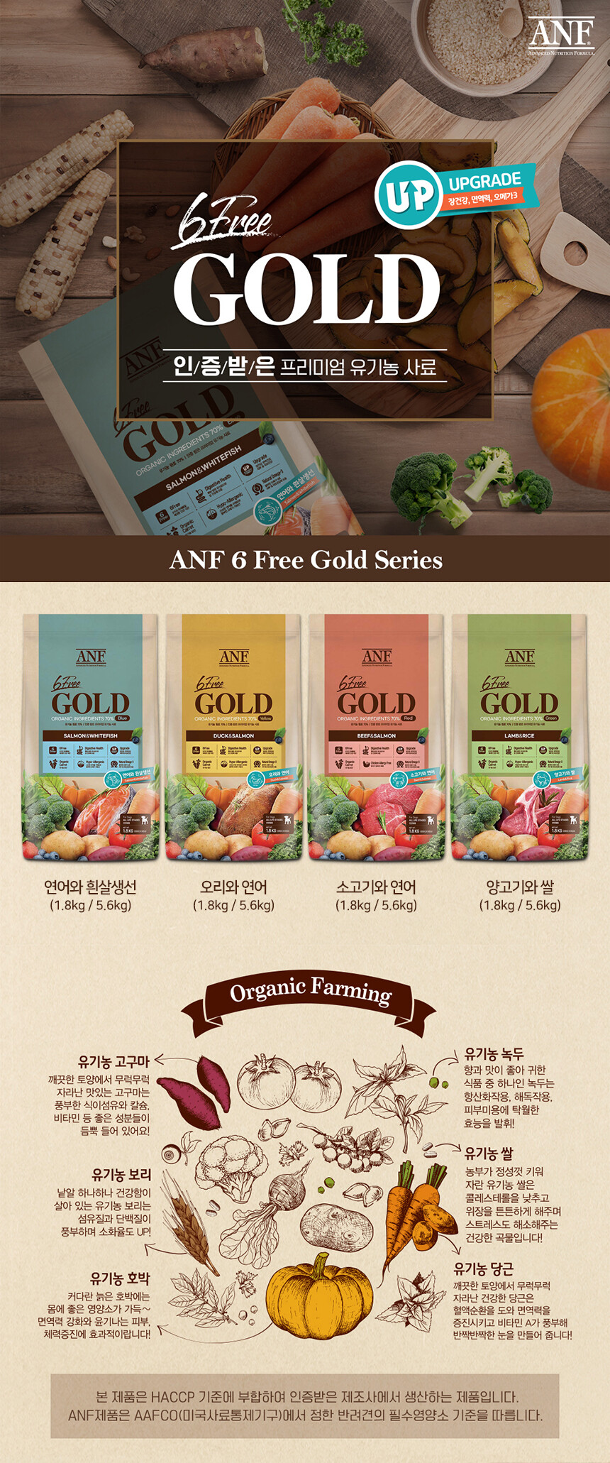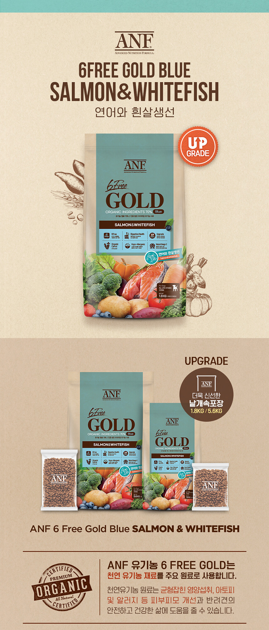 [ANF][강아지사료] 유기농 6FREE GOLD 독 연어와 흰살생선 1.6kg