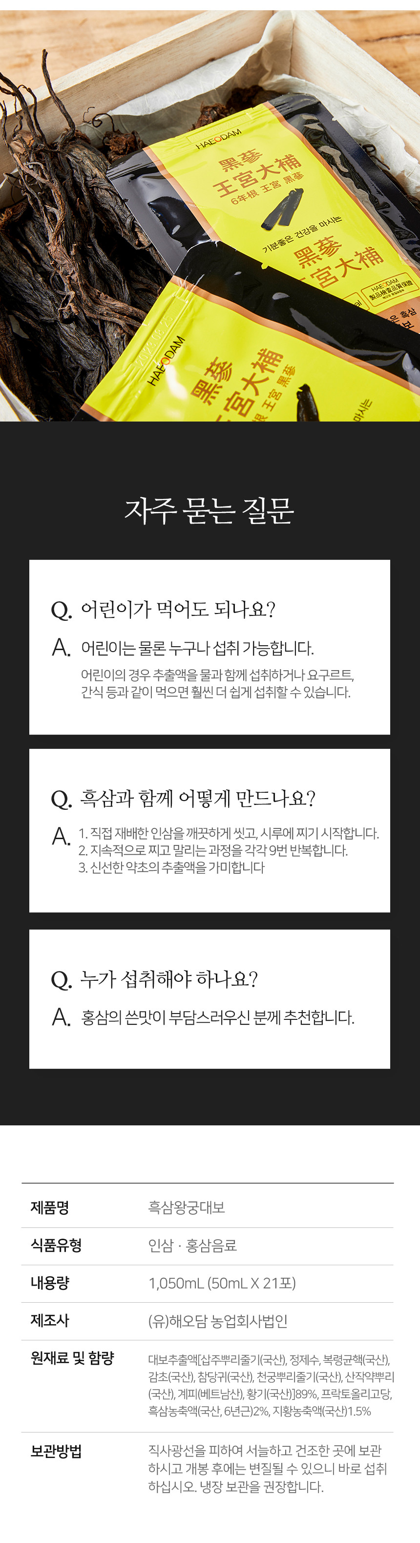해오담 구증구포 흑삼진액 왕궁대보 50ml X 21포