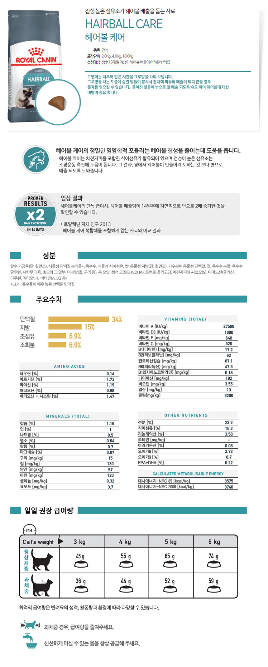 [로얄캐닌][고양이사료] 캣 헤어볼 2kg