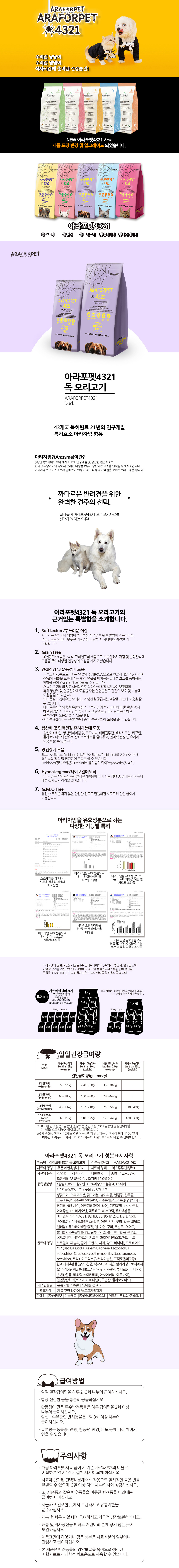 [아라포펫4321] [강아지사료] 독 사료 오리고기 1.2kg / 3kg