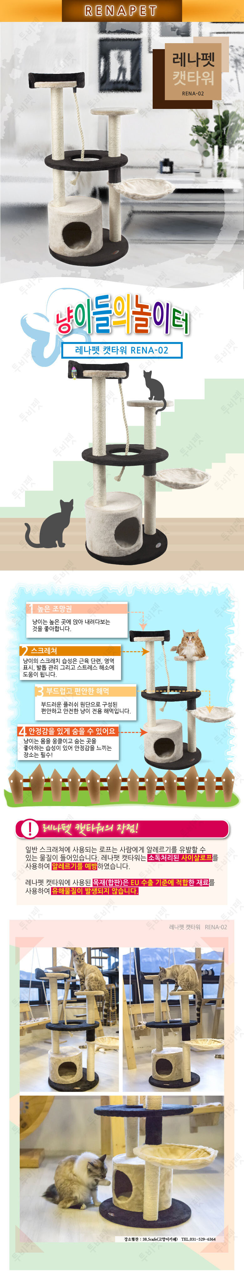 [고양이 장난감] 산시아코리아 레나펫 캣타워 02 (블랙/베이지콤보)