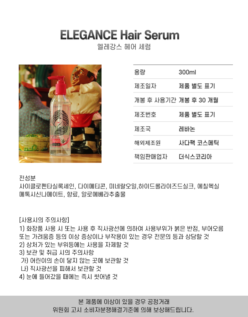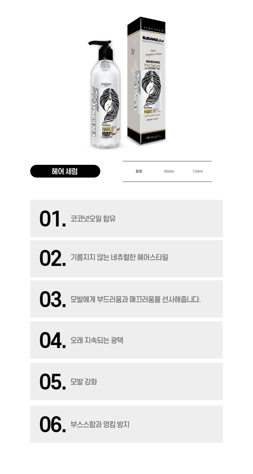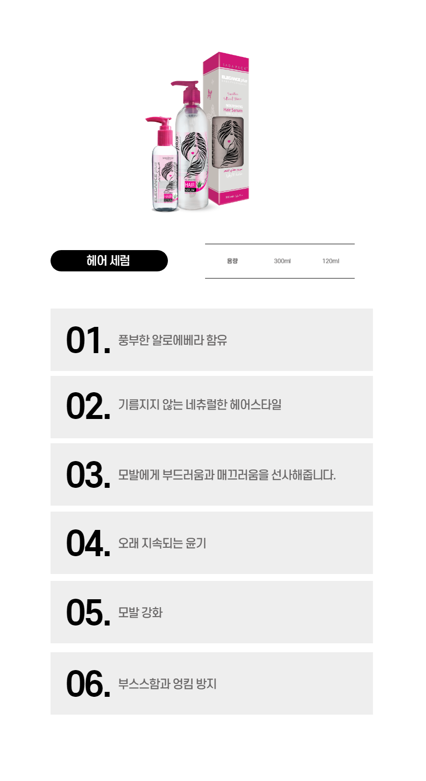 엘레강스 플러스 헤어세럼 300ml 알로에베라 본사정품 볼륨빵빵