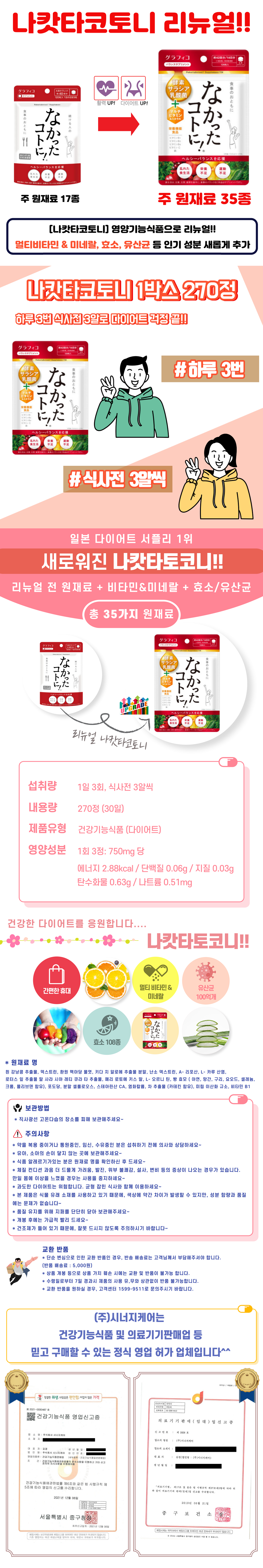 NEW 리뉴얼 나캇타코토니 270정 다이어트 영양보조식품
